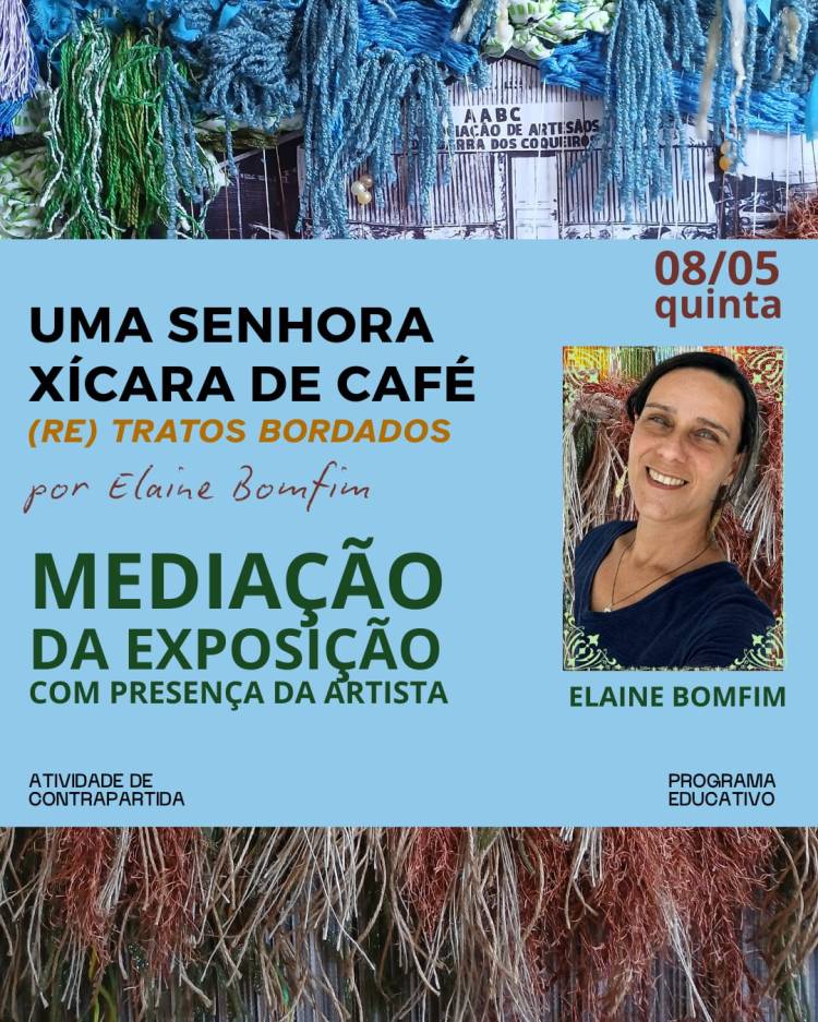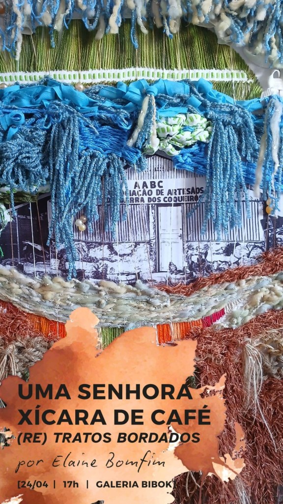 A Exposição Individual de Elaine Bomfim, “Uma Senhora Xícara de Café – (Re) Tratos Bordados”, reúne obras originadas no convívio da artista com as artesãs que mobilizam a Associação de Artesãs/os da Barra dos Coqueiros – AABC.