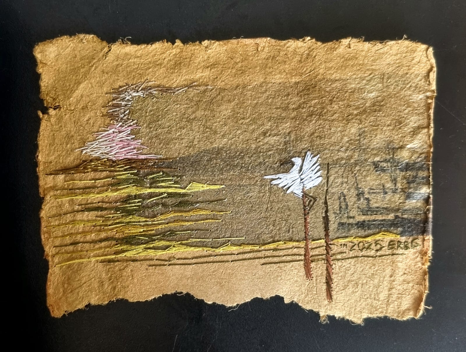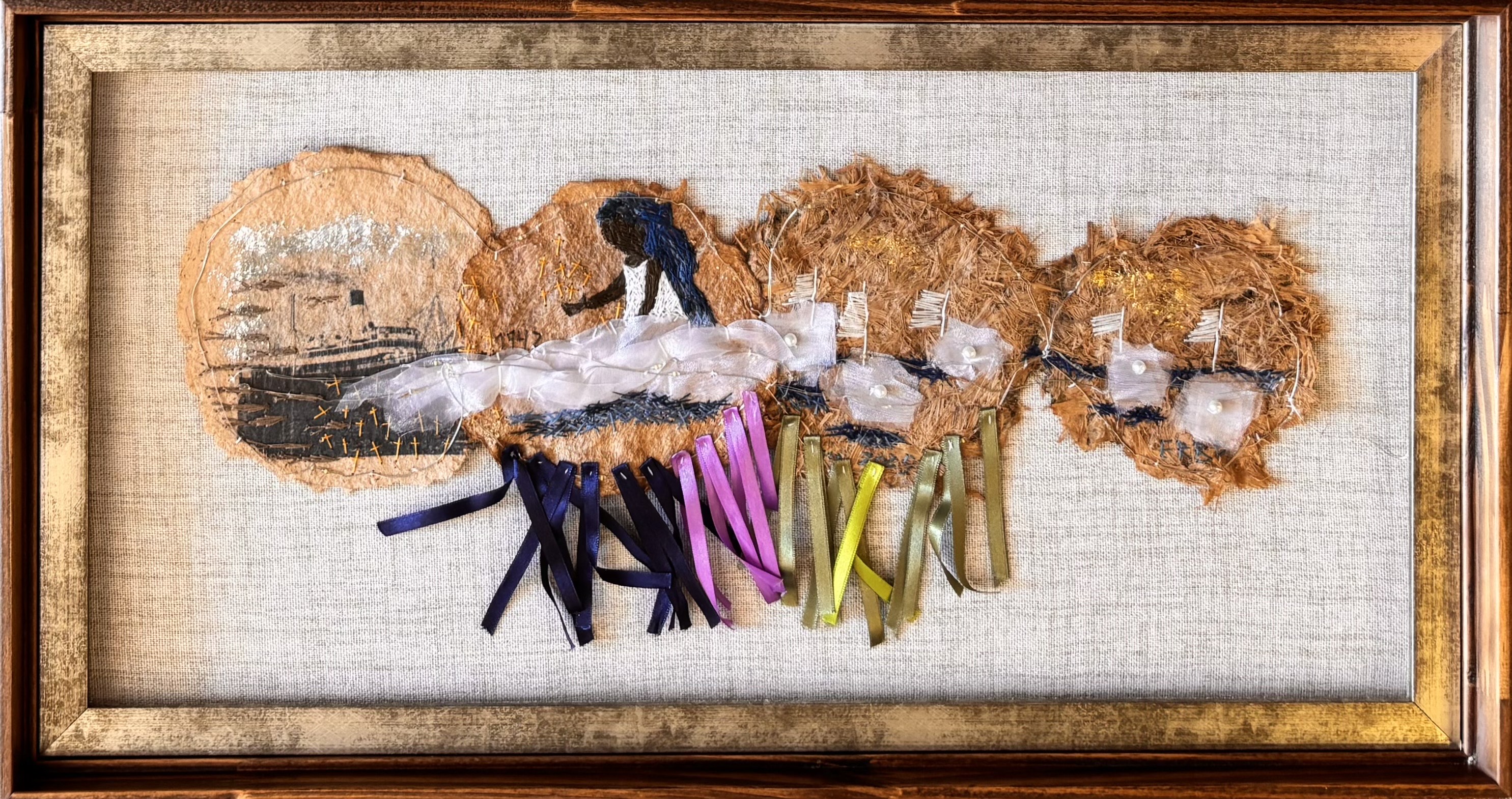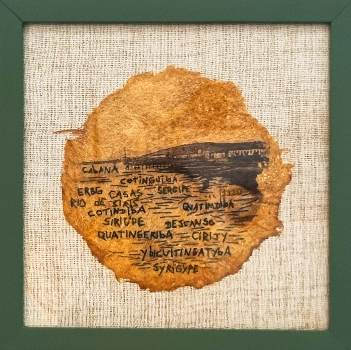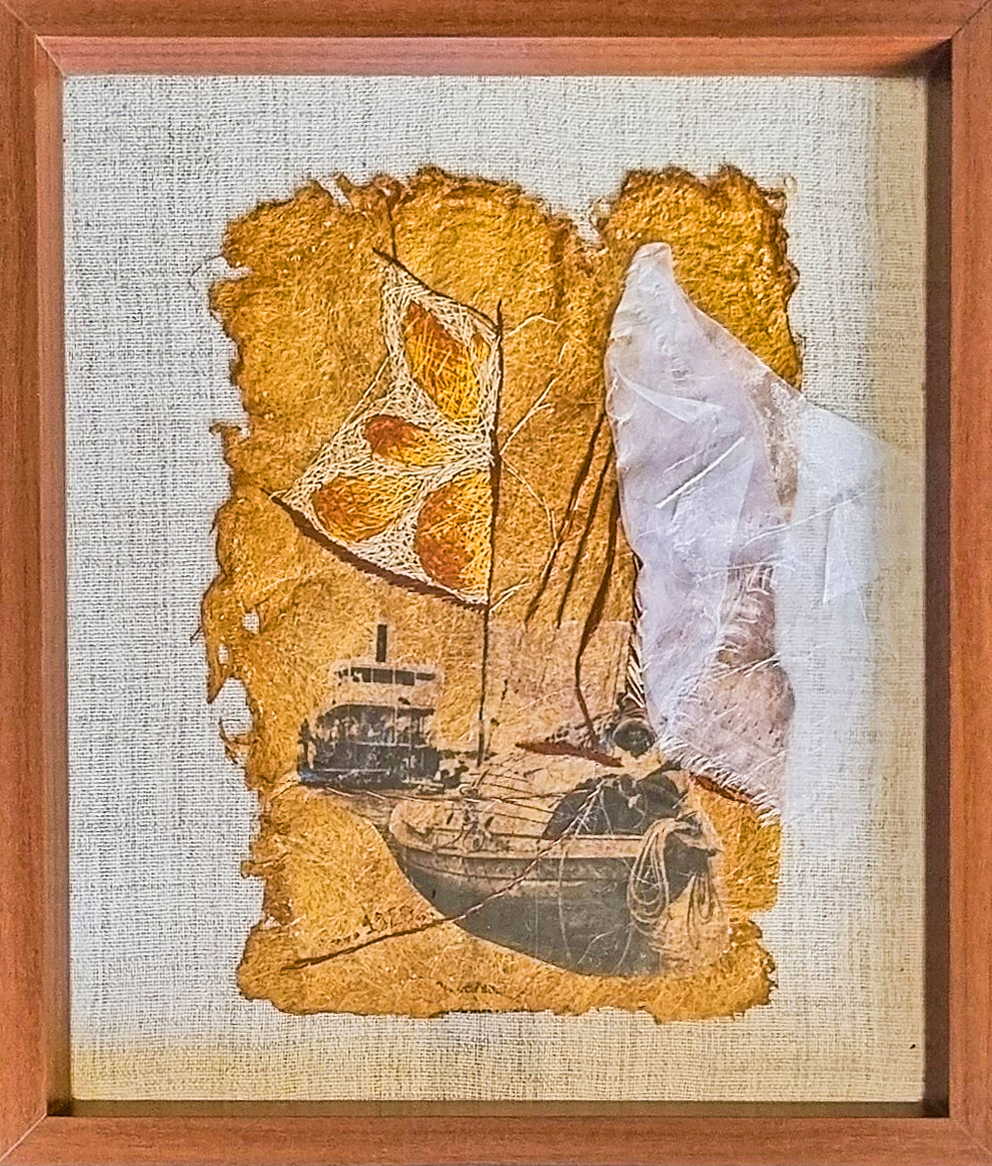 Novelos ao Mar é um conjunto de 27 obras realizadas a partir de pesquisa de imagem sobre as embarcações que navegaram o rio Sergipe. Bordados sobre fotografias de época impressas sobre papéis artesanais. 1855 – 2025.