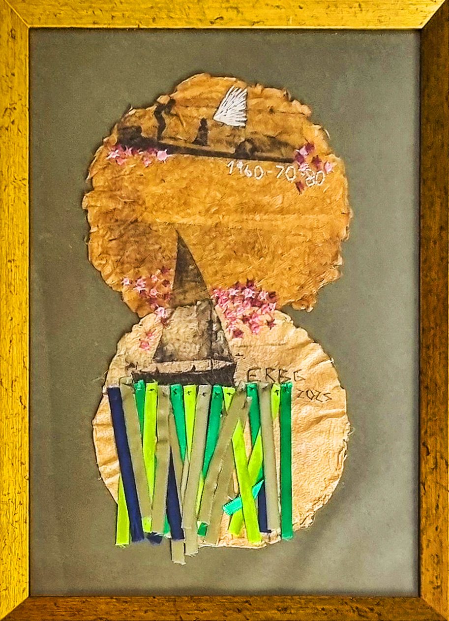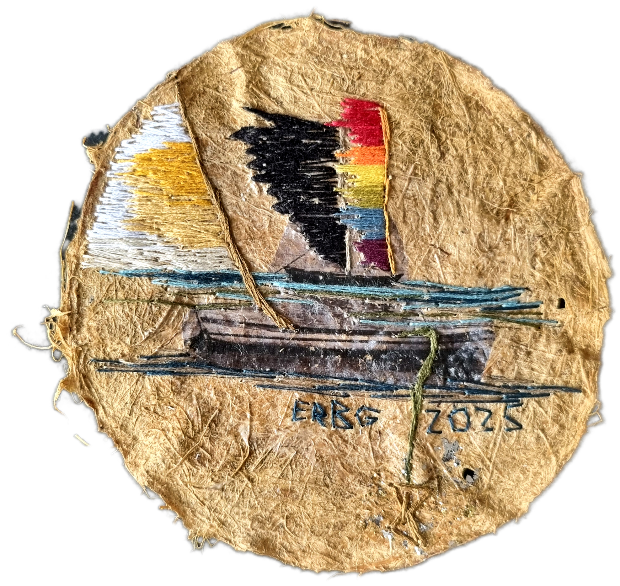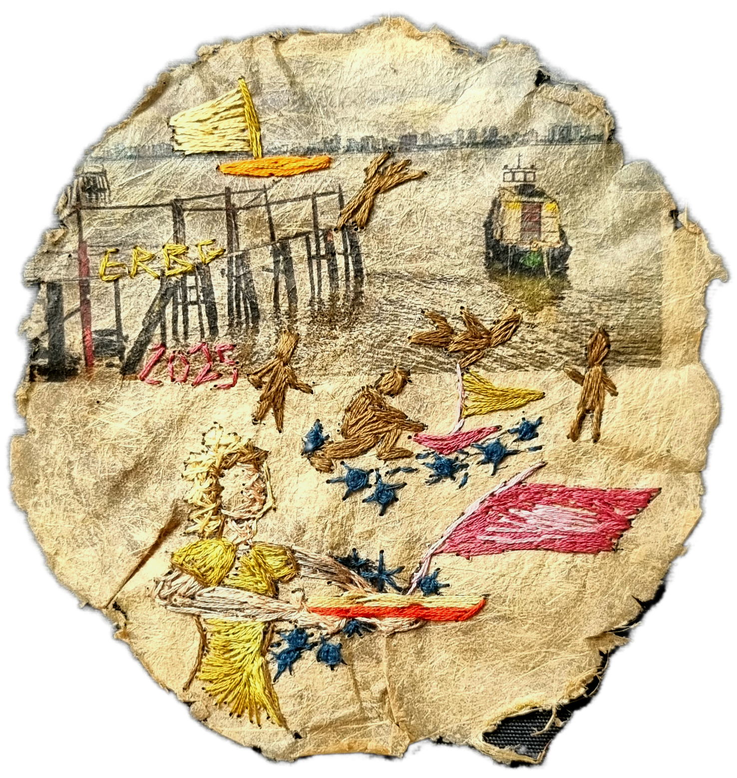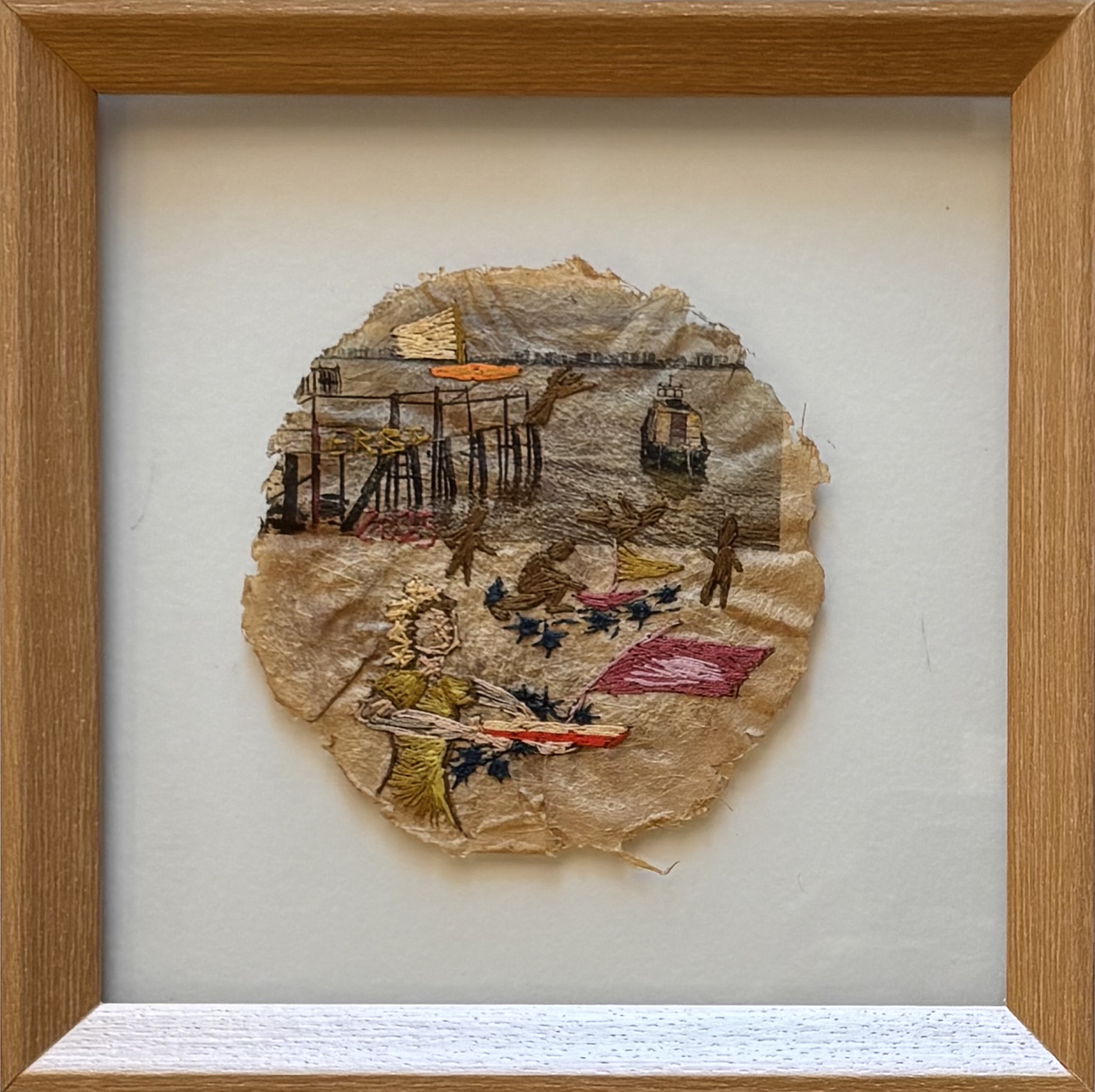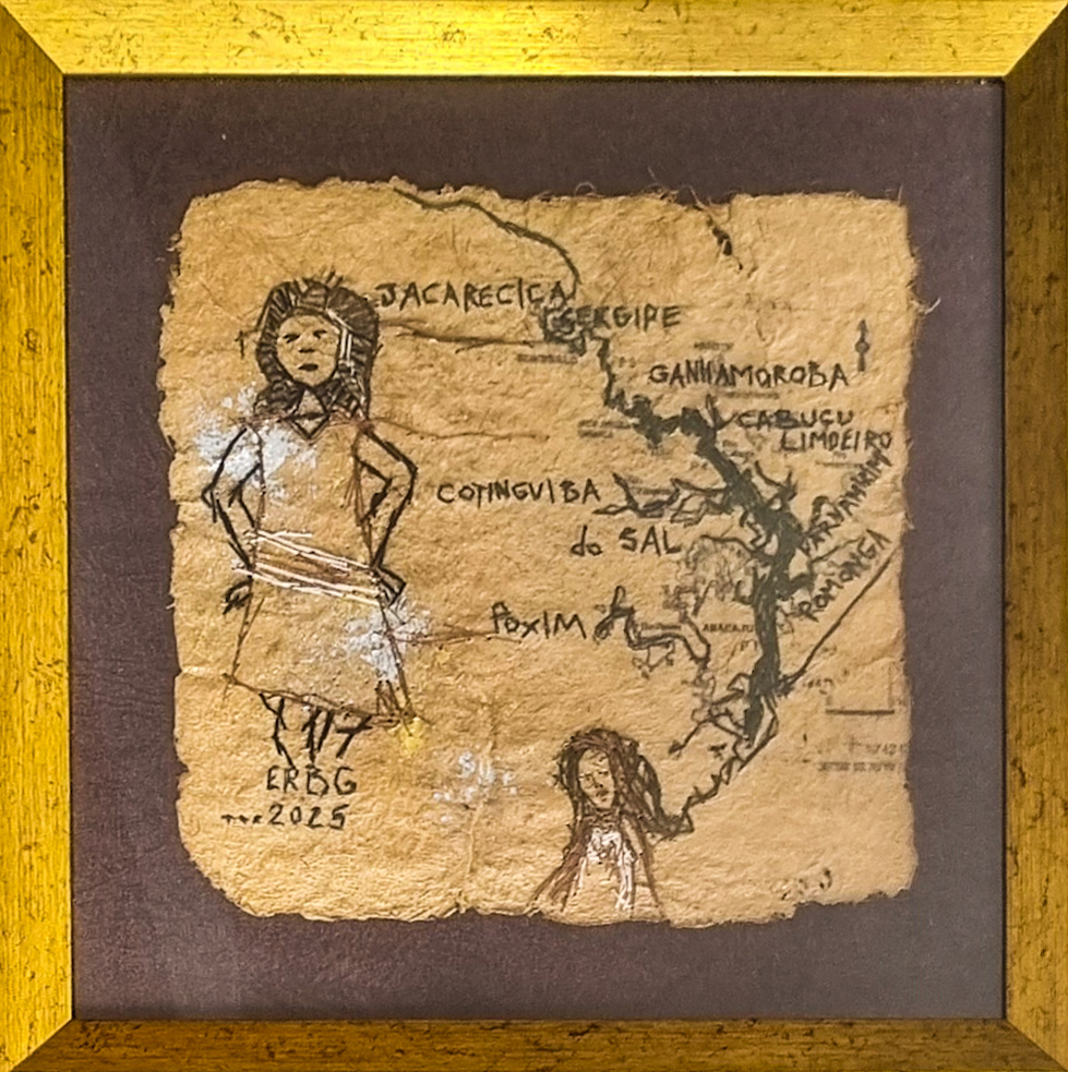 Novelos ao Mar é um conjunto de 27 obras realizadas a partir de pesquisa de imagem sobre as embarcações que navegaram o rio Sergipe. Bordados sobre fotografias de época impressas sobre papéis artesanais. 1855 – 2025.